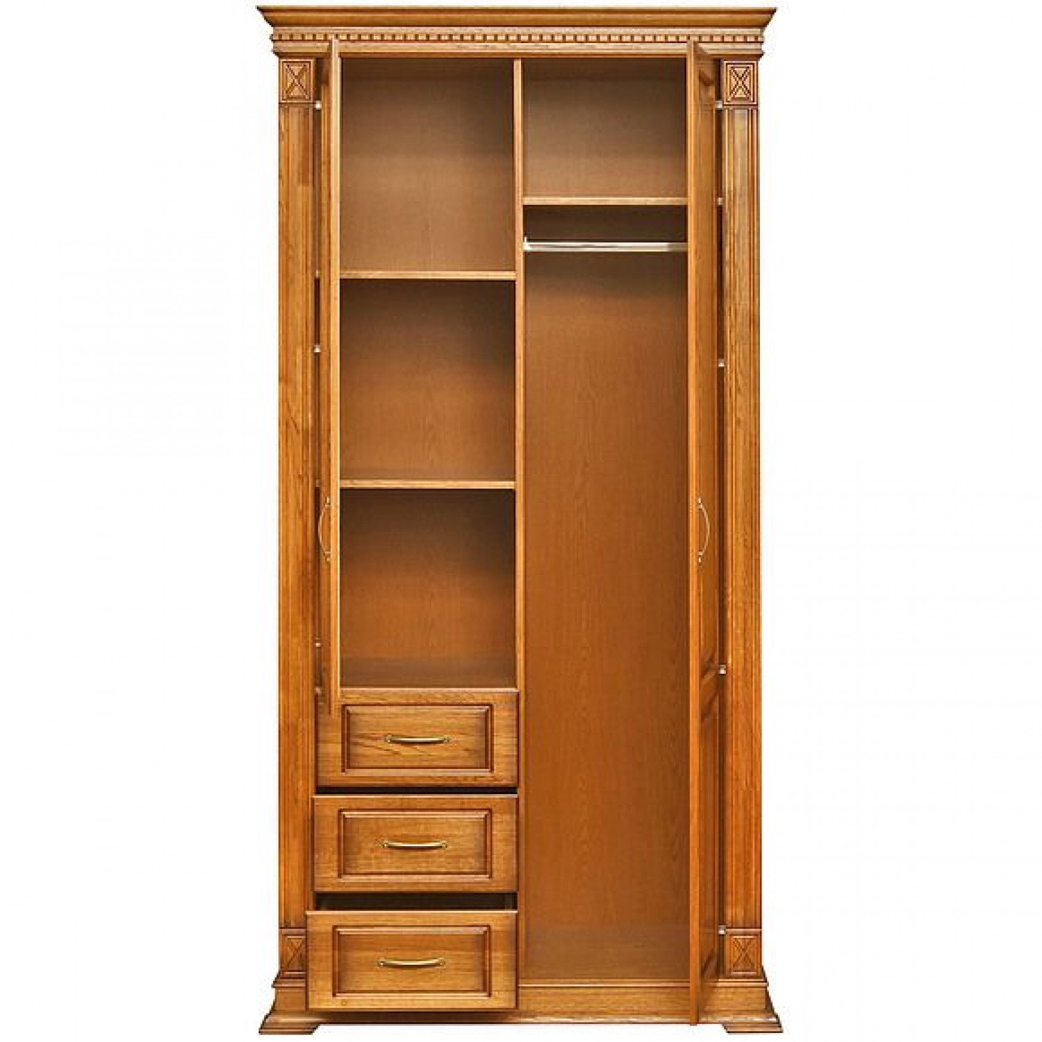 Деревянный шкаф Верди 318 выполнен из массива сосны,в данной модели вы можете самостоятельно указать цвет и материал,выбрав соответствующую опцию.